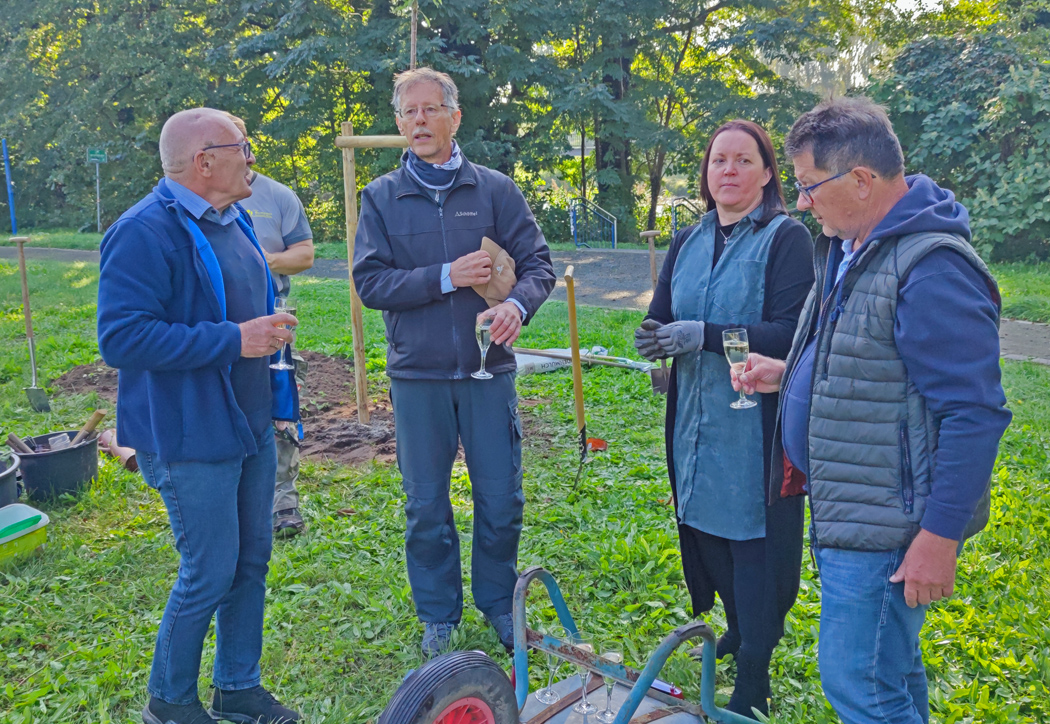 In Bad Liebenwerda pflanzen die Lions am Feiertag im Kurpark und komplettieren dort die schöne Reihe junger Bäume. Dort haben in diesem Jahr auch Familien aus Anlass besonderer Jubiläen Bäume gepflanzt. In der Kurstadt greift Johannes Berger, ehrenamtlicher Bürgermeister, zum Spaten. Im Kurpark mit seinen teils überalterten Bäumen ist jeder junge Baum gern gesehen. Allerdings, so Johannes Berger: „Wir haben Erfahrungen sammeln müssen. Einige Bäume, die Spender pflanzten, sind wegen Sorte und Standort eingegangenen. Wir passen da jetzt deutlich mehr auf.“ Für die Lions gibt in der Kurstadt Thomas Körlin das Versprechen ab: „Rechnen Sie auch im nächsten Jahr mit uns beim Einheitsbuddeln.“